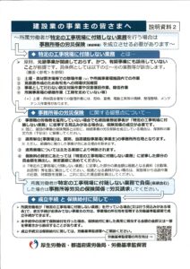 この度、厚生労働省から、建設の事業の「事務所等労災」の成立手続について手続推奨がありました。